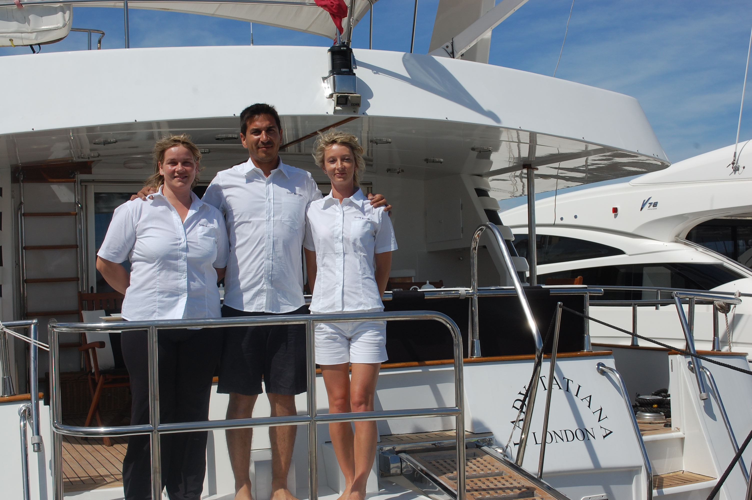 crew, when viewing the crew photo from the left to right, are the Chef Petra Vranska, the Captain Jose Arana and the Stewardess / deck hand Mariana Schonova.